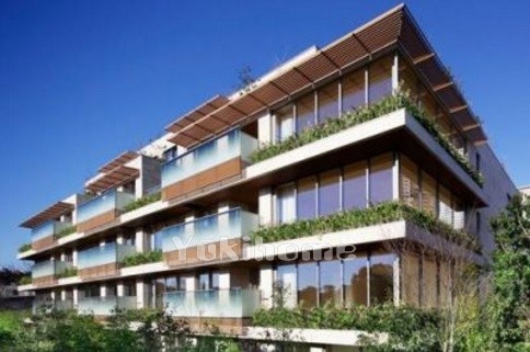緑が豊富で優しいブラウン基調の外観、ぬくもりある特徴的なファザード。